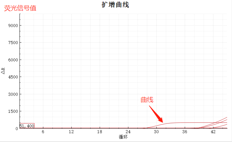 而正常情况如下图,纵坐标的范围是可以随着曲线最大荧光信号值而变化的,并可获得一条漂亮的S曲线。
