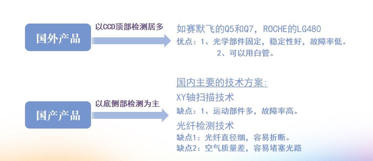 那么荧光定量PCR仪需要采用 什么技术才能满足使用白管呢? 我们来看一下 国际主流品牌的定量PCR仪半岛bd体育手机客户端 , 一探究竟吧~ 首先我们来看一下赛默飞的高端系列Q5和Q7,他们用的是CCD顶部检测的技术方案,再来看一下罗氏的旗舰半岛bd体育手机客户端 LG480,我们可以看到,他们用的也是CCD顶部检测技术。