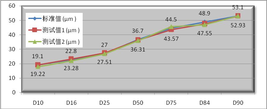 在粒度测试中,一般用颗粒度标准物质来衡量准确度。测试国家标准样GBW(E)120009的标称数据与BT-1500,一致性好、/span>