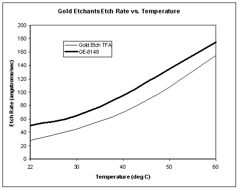 金薄膜蚀刻剂在光刻法制作微电子线路中用以选择蚀刻金。和光刻技术相结合这些蚀刻剂可在氧化铝或其他基板上的薄膜上制作精密电极和电阻图案?nbsp; 不含氰化物,不浸蚀镍膜、br/>