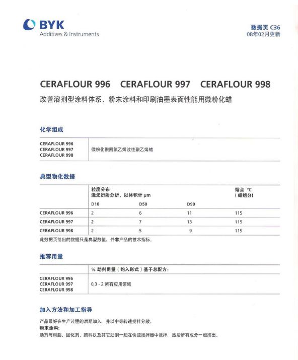 BYK-CERAFLOUR-997聚四氟乙烯改性蜡微粉化蜡