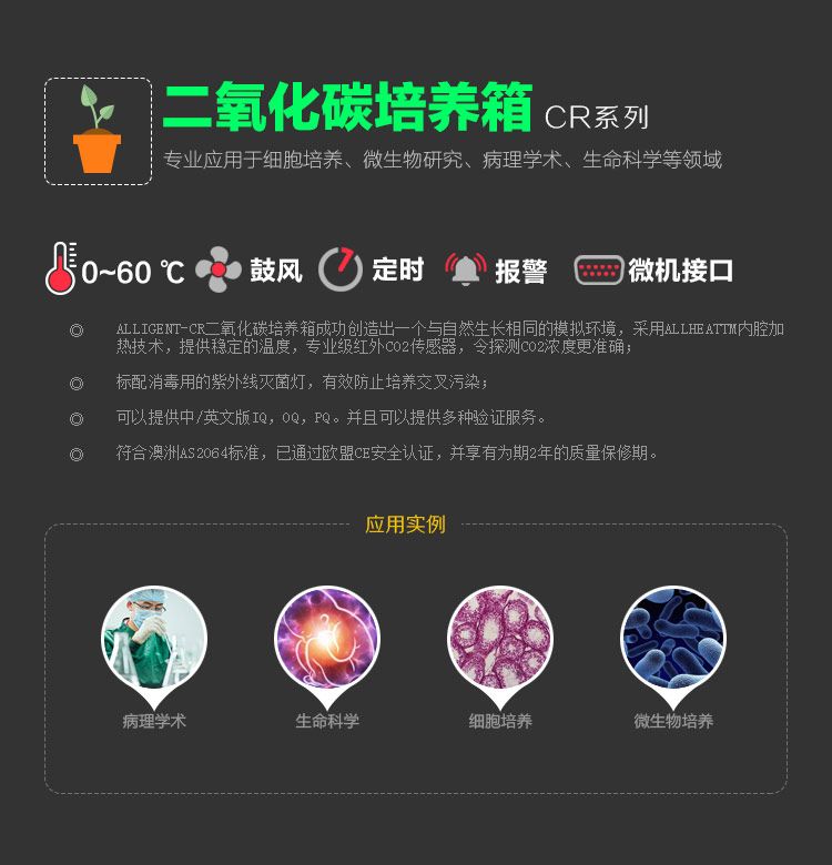 二氧化碳培养箱CR成功创造出一个与自然生长相同的模拟环境,采用ALLHEAT?内腔预热技术,提供稳定的温度,专业级红外CO2传感器,令探测CO2浓度更准确;