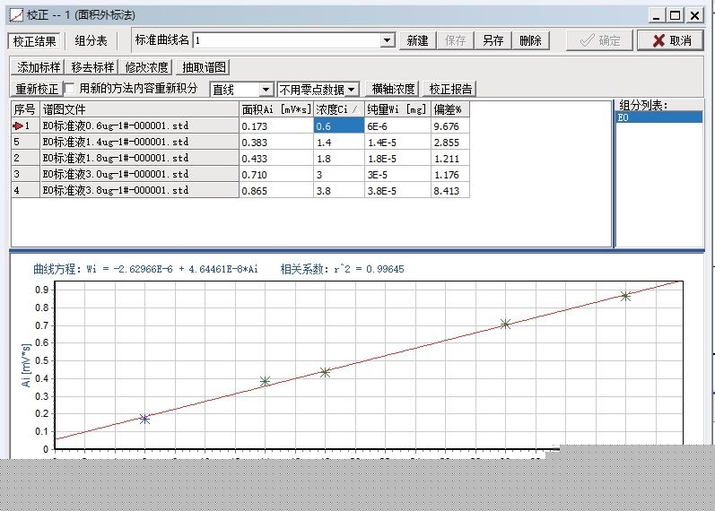 ?中显示,环氧乙烷标准样品曲线的相关因?校准系数)大于0.996,符合国标要求、/span>