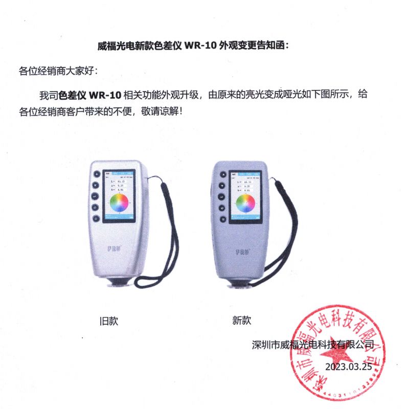 威福光电新款色差仪WR-10外观变更告知凼/div>