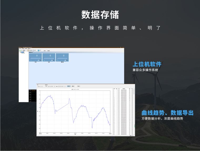 配上位机软件,可连接电脑实时监控,并记录存储、导出数据、/p>