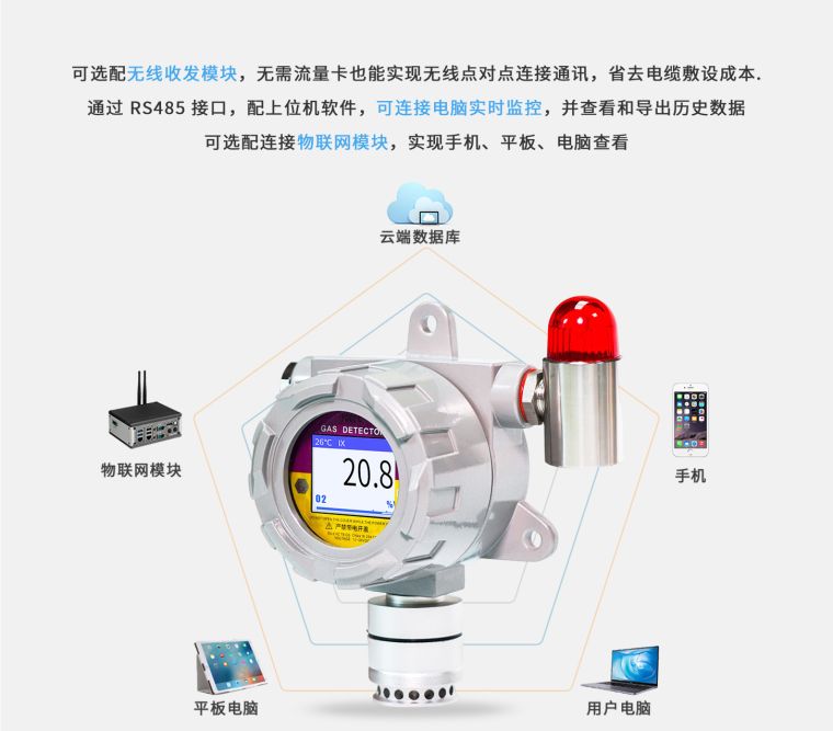 可将浓度数据实时远传到集中控制平台、PLC、DCS等,