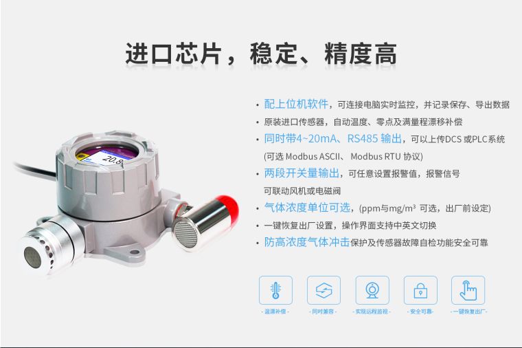 原装进口传感器,两级声光报警,中英文切换、/p>