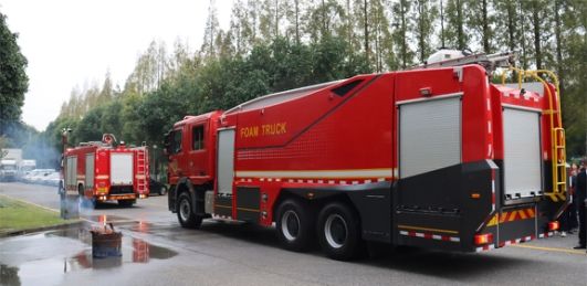 本次消防演习与昆山高新区消防中队联动,消防车和消防员也抵达了公司现场,进行消防安全指导检查、/p>