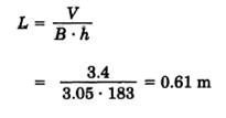 假设一个沉降室的气体流量为2.8 m3/s,宽度为3.05 m,高1.83 m,用于收集直径为400μm的颗粒,颗粒密度?000 kg/m3,并且气体为标准状态下的空气,那么需要沉降室的长度是多少?