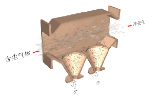 重力沉降室具有结构简单,投资少,压力损失小的特点,维修管理较容易,而且可以处理高温气体。但是体积大,效率相对低,一般只作为高效除尘装置的预除尘装置,来除去较大和较重的粒子。例如一些电厂锅炉烟尘和耐火材料原料的粉尘处理,会选用重力沉降室、/span>