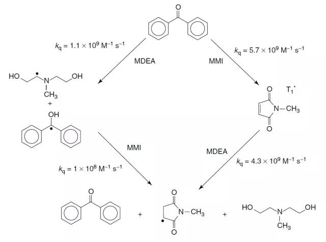 ? BP-MDEA-MMI三组分存在情况下的光引发机理