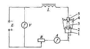 E-直流电源;V-直流电压表;L-电感;R-可变电阻;A-直流电流表;I-阳极;2-样品槽?-电弧柱?-电弧火焰;5-阴?/p>