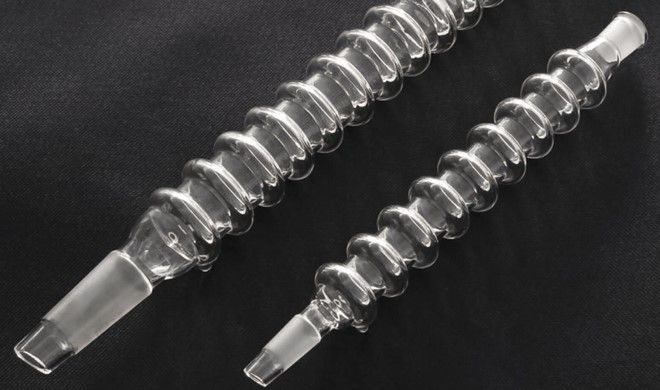 很多人不禁想问空冷式冷凝管和分馏管到底有什么不同呢?不同之处就在于它的冷却效率。它的内部有很多凸起、理论板数很多,比冷却作用强大的分馏管的冷却效率还要高得多。在实际使用中,不用水就能快速地回流液体。唯一的缺点就是价格昂贵、/p>