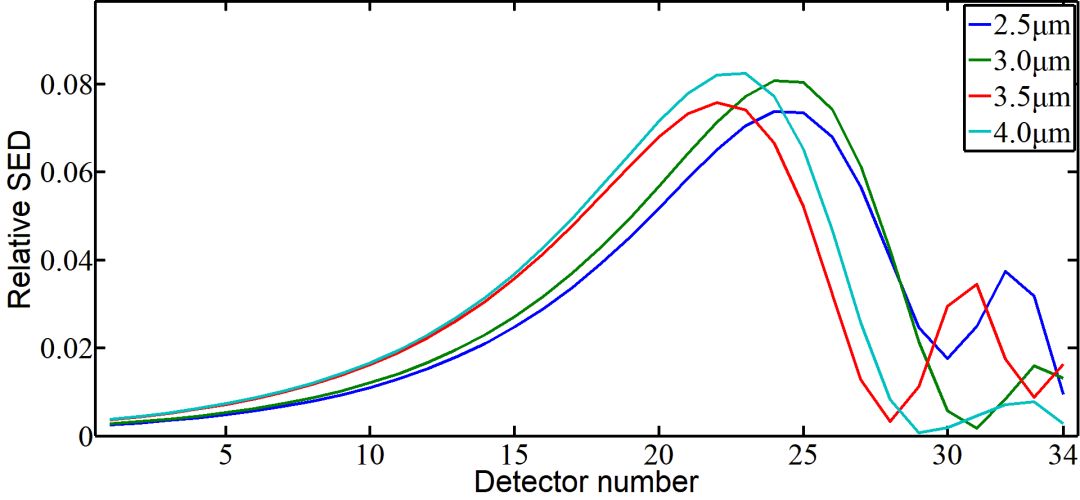 ? 多种细颗?小于0.3μm)的散射光能分布以及实际被接收到的光能分布