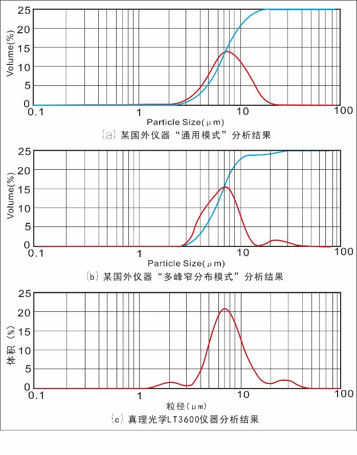 激光粒度仪经过几十年的发展,已经有多种公开报道的可用于实际的反演算法,实现上述?3)条并不难。所以,只要?1)?2)条得到满足,就可获得足够准确的粒度分布数据。而正确的结果只有一个,因此如果不同的激光粒度仪都能给出正确的结果,那么这些结果在合理的误差范围内就应该是一致的。下面看一个实测的例子9/span>