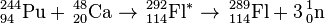 1998?2月,位于俄罗斯杜布纳联合核研究所(JINR)的科学家使用48Ca离子撞击244Pu目标体,合成一个鈇原子。该原子?.67 MeV的能量进行α衰变,半衰期为30秒。该原子其后被确认为289Fl同位素。这项发现在1999?月公布。然而,之后的实验并未能重现所观测到的衰变链。因此这颗原子的真正身份仍待确认,有可能是稳定的同核异构佒sup>289mFl、br/> 1999?月,同一个团队以242Pu代替244Pu目标体,以合成其他的鈇同位素。这次,他们成功合成两个鈇原子,原子?0.29 MeV的能量进行α衰变,半衰期为5.5秒。这两个原子确认丹sup>287Fl。其他的实验同样未能重现这次实验的结果,因此真正产生的原子核身份一样不能被确定,但有可能是稳定的同核异构体287mFl、br/> 杜布纳的团队?999?月进行实验,成功制成鈇。这项结果是受到公认的。他们重复进衋sup>244Pu的反应,并产生两个鈇原子,原子以9.82 MeV能量进行α衰变,半衰期?.6秒、br/> 研究人员一开始把所产生的原子认定为288Fl,但2002?2月进行的研究工作则将结论更改丹sup>289Fl、/span>