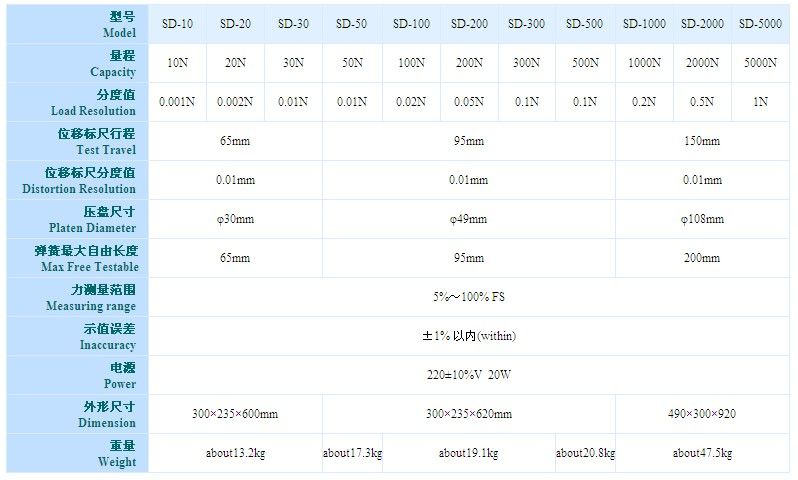 SD系列电子数显弹簧拉压试验机是测试拉伸、压缩弹簧的变形量和负荷关系特性的专用仪器。适用于拉伸、压缩弹簧在一定工作长度下的工作负荷的测试,也可用于橡胶、簧片等弹性器件的弹力负荷测试、/span>
