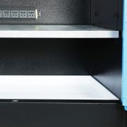 产品特点9/p> 1. 智能安全电池充电柜适用于各类电动工具电池的存放和充电。柜体采用FM6050标准防火结构设计,产品符合美国职业安全健康协会OSHA 1910.106要求及美国消防协会NFPA 30法规:/p> 2. 柜体顶部配置变频、低功率轴流风机进行排风作业,有效的排出电池充电产生的热量,同时采用对角双通道抽风管设计,可使得排风效率更加高效。轴流风机转速:5000?分钟,风量:275 m3/ h:/p> 3. 柜内标配四组工业级PUD插座,四组插座单独线路控制,可有效的预防线路过载和短路,为电池的充电提供了安全保障; 4. 柜内标配四块可调层板,每块层板开有多处散热通风孔,增加柜体内部空气流动性。同时柜体底部安装了PP盛漏槽,用于盛装电池泄漏产生的电解液等腐蚀性液体; 5. 柜内安装了工业级高精度温湿度变送器,采用瑞士进口传感器,支持RS485信号输出。开机状态下可时刻监测柜体内部温湿度数值,当温湿度超过设置的限定值时,内置的蜂鸣器自动报警; 6. 柜内顶部安装了高灵敏度的烟感探测器,当烟感探测器探测到烟雾时,柜体正面的蜂鸣器会发出报警:/p> 7. 柜内安装LED无炫目照明灯,均匀照明柜体内部。LED灯的开关为自动模式,开门LED灯自动开启,关门LED灯自动关闭; 8. 柜内预留安装了悬挂式自动灭火器的吊挂点,用户可根据实际使用需求安装悬挂式自动灭火器; 9. 柜体安装的电器元件均选用国内外知名品牌,进一步的提高的设备运行的稳定性和安全性; 10. 柜体工作电压 AC 220V/50Hz:/p> 11. 外排通风管直径:100mm:/p>