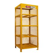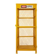 气瓶柛/strong>整个结构由钢板底座和顶盖,网状周围组成,起到通风的作用; 如需要,可以在空载状态下搬运柜体:/p> 压缩气瓶柜配置可调节的链条,用于保护气瓶处于竖直状态; 设置双锁结构,保证未经许可的人员进入;(挂锁不提供) 底部撑预留孔位,便于与地面安装固定;(安装五金件不提供) 气瓶柛/strong>磁吸门结构维持柜门处于关闭状态; 表面选用具有警示作用的黄色喷涂,具有一定的耐腐蚀性,可用于室外; 柜体标识“危 易燃 物品”字样; 拼装设计降低运输成本:/p>