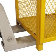 气瓶柛/strong>整个结构由钢板底座和顶盖,网状周围组成,起到通风的作用; 如需要,可以在空载状态下搬运柜体:/p> 压缩气瓶柜配置可调节的链条,用于保护气瓶处于竖直状态; 设置双锁结构,保证未经许可的人员进入;(挂锁不提供) 底部撑预留孔位,便于与地面安装固定;(安装五金件不提供) 磁吸门结构维持柜门处于关闭状态; 气瓶柛/strong>表面选用具有警示作用的黄色喷涂,具有一定的耐腐蚀性,可用于室外; 柜体标识“危 易燃 物品”字样; 拼装设计降低运输成本:/p>
