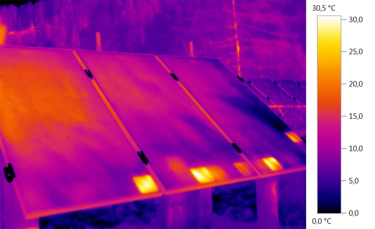 检查太阳能系统有两个主要原因:安全型和性能监测。太阳能系统在充足的阳光下实现其热辐射能 Testo 热成像仪可用于监控各种尺寸的光伏系统,特点是广泛的、非接触式的、效率极高。检测到故障,确保所有部件的正常运行并因此实现最大可能的效率。此外,通过输入太阳辐射强度这一关键测量参数,还可以实现额外的可靠性:输入的值与热图像一起存储,然后可用于图像分析、/span>