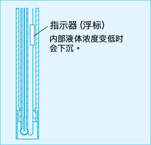 本公司的pH电极在内部液体中放置了浓度指示器,浓度变低时指示器会下沉,可以直观地看到浓度的变化、/p>