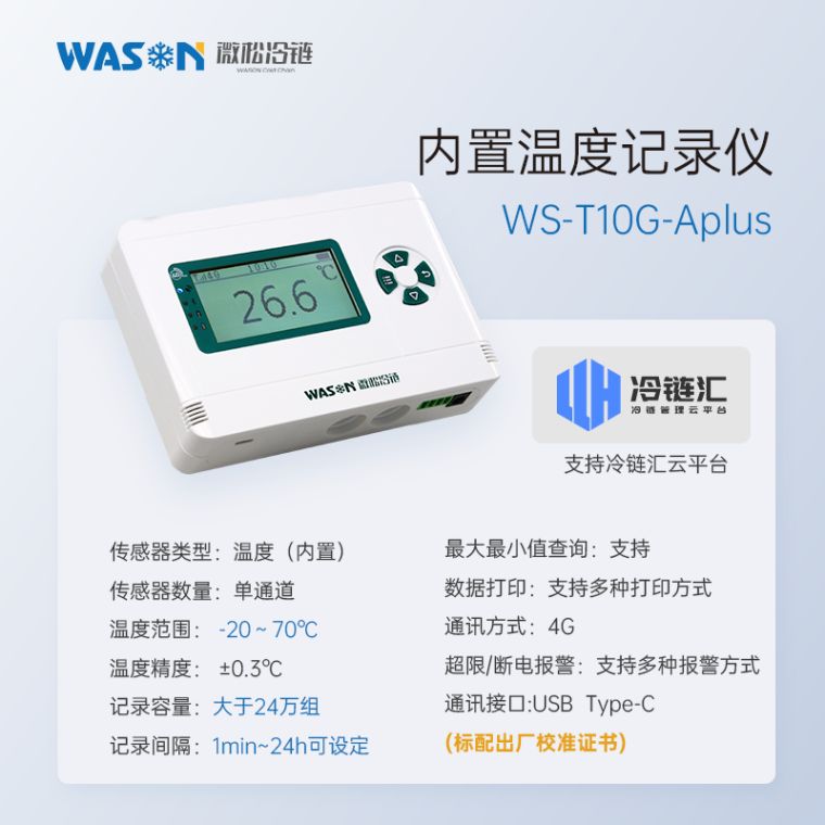 微松G-Aplus系列温湿度记录仪是一?G传输的网络型智能仪表,符合GSP/GMP规范。传感器型号多,检测范围广;可外接声光报警器,实现高分贝声光报警;GPRS(4G)传输,距离不受限制;自带内存,离线数据自动补传;蓝牙通讯,可配专用蓝牙打印机直接现场打印数据;连接专用冷链汇云平台,实现电脑和手机端远程数据管理,超限报警、断电报警等功能。广泛应用于食品医药、临床实验、化工电子、档案文博、农业科研等领域、/p>