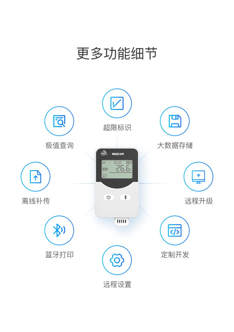 微松G-Xplus系列温湿度记录仪是一?G传输的网络型智能仪表,符合GSP/GMP规范。可实现远程温湿度监测、实时定位、蓝牙打印、超限报警、开关门报警等功能,同时具有**的续航能力。通过冷链汇云平台可实现记录仪参数远程设置、历史数据和位置轨迹查询。广泛应用于医药冷链、食品生鲜等行业,可配合保温箱嵌入使用、/p>