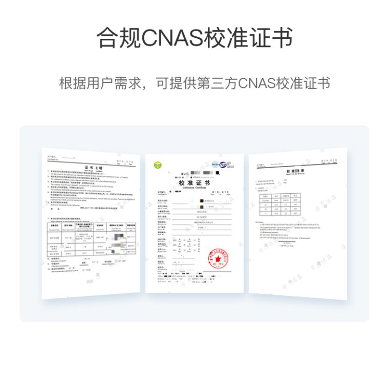 标配出厂校准证书;选配CNAS校准证书 |