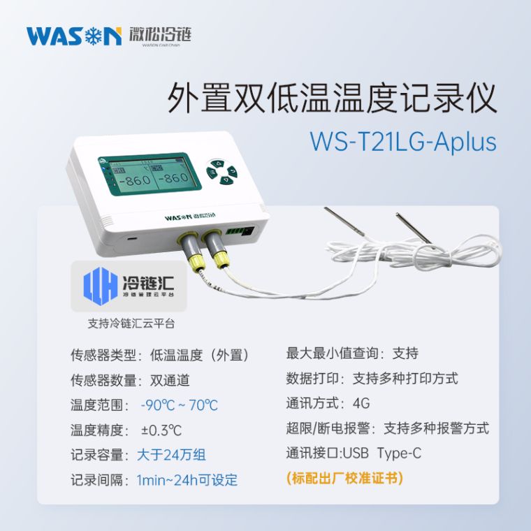 微松G-Aplus系列温湿度记录仪是一?G传输的网络型智能仪表,符合GSP/GMP规范。传感器型号多,检测范围广;可外接声光报警器,实现高分贝声光报警;GPRS(4G)传输,距离不受限制;自带内存,离线数据自动补传;蓝牙通讯,可配专用蓝牙打印机直接现场打印数据;连接专用冷链汇云平台,实现电脑和手机端远程数据管理,超限报警、断电报警等功能。广泛应用于食品医药、临床实验、化工电子、档案文博、农业科研等领域、/p>