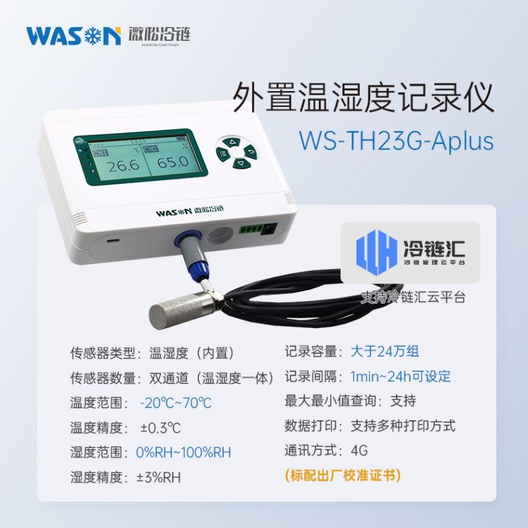 微松G-Aplus系列温湿度记录仪是一?G传输的网络型智能仪表,符合GSP/GMP规范。传感器型号多,检测范围广;可外接声光报警器,实现高分贝声光报警;GPRS(4G)传输,距离不受限制;自带内存,离线数据自动补传;蓝牙通讯,可配专用蓝牙打印机直接现场打印数据;连接专用冷链汇云平台,实现电脑和手机端远程数据管理,超限报警、断电报警等功能。广泛应用于食品医药、临床实验、化工电子、档案文博、农业科研等领域、/p>