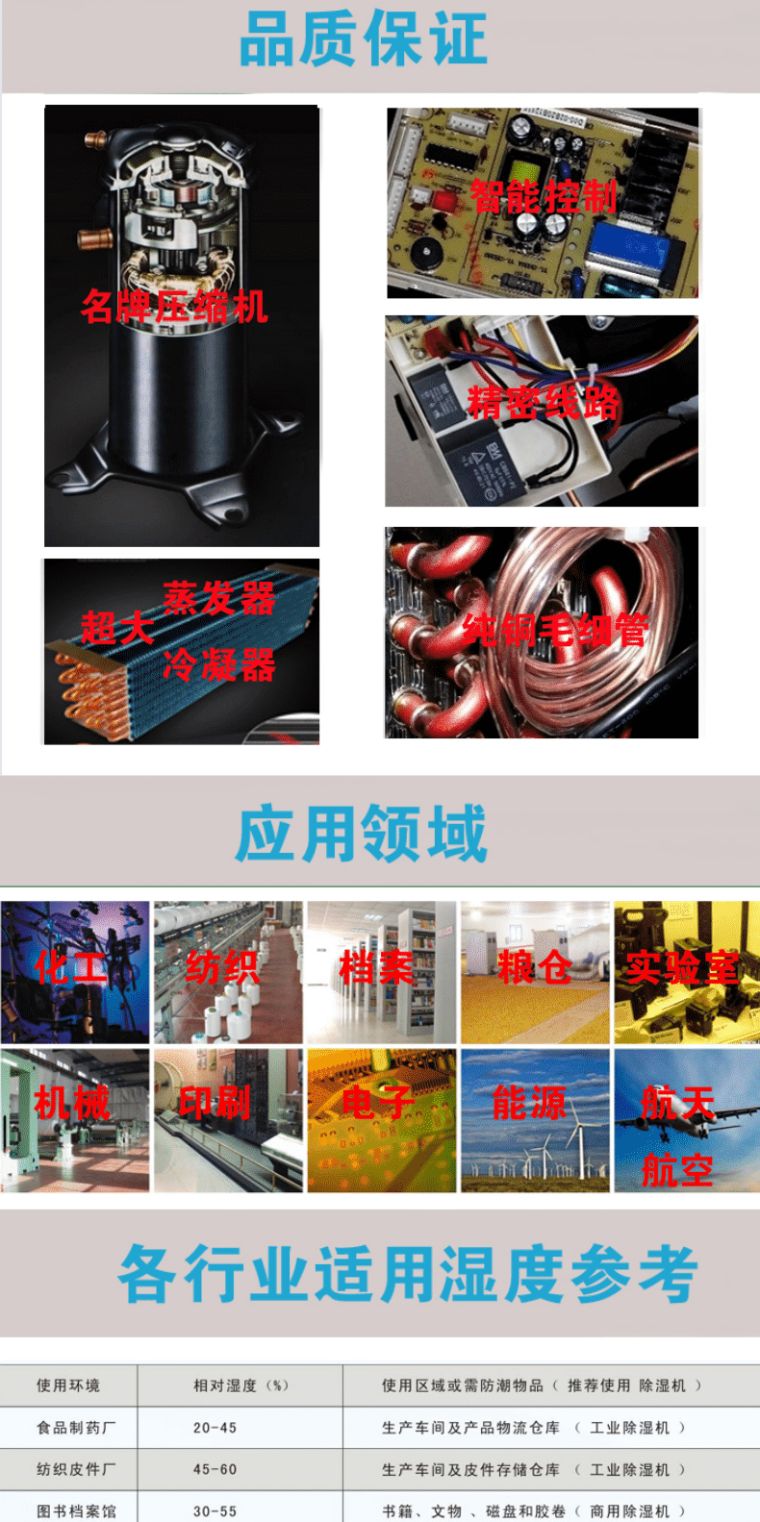 3、电脑房和实验室的除湿。商品储藏、地下工程以及电脑室、资料室、档案室、仓库、浴室等高湿度场所