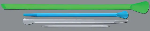 | General description【一般描述】 | smartSpatula 是一种清洁的、经济的、一次性刮刀,用于化学和生物材料的转移、收集和操作。 采用双头设计,一端带有勺子/刮刀,另一端带有一个可打碎团块的铲,或者作为一种微型设计,两端都是铲设计。 Macro smartSpatula 尺寸增大了 50%,并且具有长轴,以便于更容易接近较大容器中的材料。在液氮冷冻后,柔性刮刀端仍是防碎的,并且形状设计易于刮取或收集样品。由聚丙烯制成。 高温高压消毒。 |