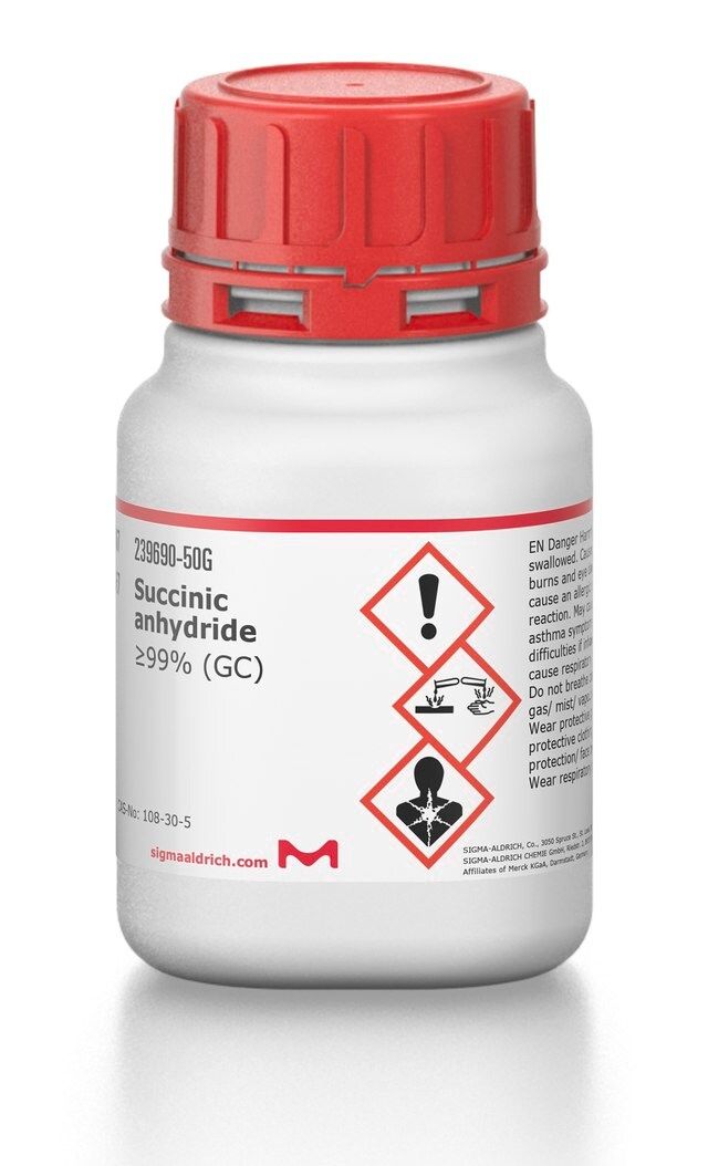 | Application【应用】 | 琥珀酸酐可用于制备共价交联的氧化藻酸盐/N-琥珀酰-壳聚糖水凝胶,作为组织工程的注射系统。它还可用于制备芯片上的官能化氧化物表面。 |