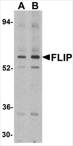FLIP antibody was raised against a peptide corresponding to amino acids near the amino terminus of human FLIP The sequence is identical in all FLIP splice variants.