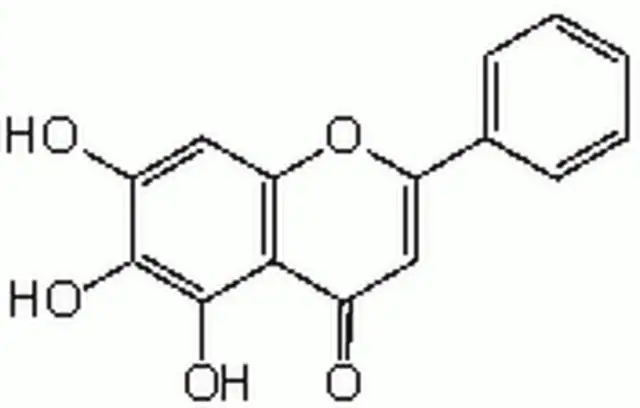 | General description【一般描述】 | A cell-permeable flavone that inhibits the activity of 12-lipoxygenase (IC50 = 120 nM) and reverse transcriptase. Protects cortical neurons from β-amyloid induced toxicity. Reduces leukotriene biosynthesis and inhibits the release of lysosomal enzymes. Also inhibits cellular Ca2+ uptake and mobilization, and adjuvant-induced arthritis. Reported to inhibit microsomal lipid peroxidation by forming an iron-baicalein complex. Inhibits topoisomerase II and induces cell death in hepatocellular carcinoma cell lines. Potentiates contractile responses to nerve stimulation. Inhibits protein tyrosine kinase and PMA-stimulated protein kinase C. A cell-permeable flavone that inhibits the activity of 12-lipoxygenase (IC50 = 120 nM) and reverse transcriptase. Reduces leukotriene biosynthesis and the release of lysosomal enzymes. Also inhibits cellular Ca2+ uptake and mobilization, and adjuvant-induces arthritis. Potentiates contractile responses to nerve stimulation. Inhibits protein tyrosine kinase and PMA-stimulated PKC. |
