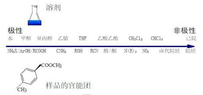(2) 溶剂对于待测样品,必须具有合适的极性和良好的选择性,即足够的溶解能力。溶剂的极性要与待测样品相匹配,如果溶解度欠佳,样品会在柱头沉淀,不但影响纯化分离,且会使柱子恶化。