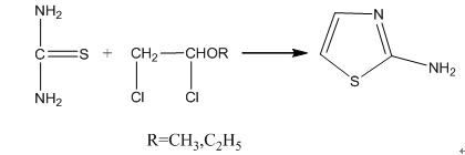 以氯乙醛和硫脲为原料,制备2一氨基噻唑的反应如下: