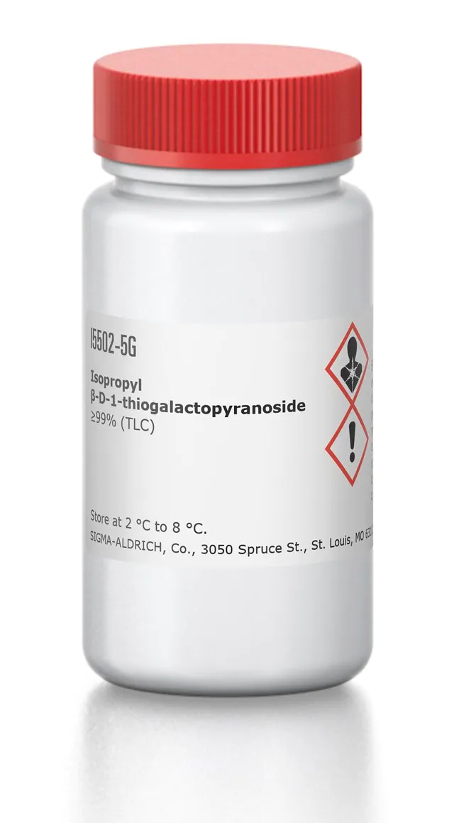 IPTG 常用于需要诱导 β-半乳糖苷酶活性的克隆实验。它常与 X-Gal 或 Bluo-Gal 结合使用,用于重组细菌菌落的蓝白筛选,这些菌落可以诱导
