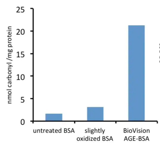 蛋白质羰基含量测定试剂盒提供了一种简单直接的方法,用以测定多种生物样品中的羰基含量。羰基含量是通过蛋白质羰基与2,4-二硝基苯基肼(DNPH)发生衍生化而进行确定,该过程会形成稳定的二硝基苯基(DNP)腙加合物,其可以通过分光光度法在375 nm处进行检测,并与羰基含量成正比。