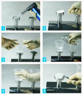 步骤1:滤头灭菌-Sterilize the filter head 步骤2:放置滤膜-Place membrane 步骤3:安装滤杯-Put on funnel 步骤4:过滤样品-Filter sample 步骤5:脱卸滤杯-Take off funnel 步骤6:转移滤膜-Transfer membrane |