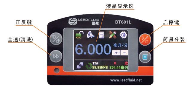 BT601L流量型智能蠕动泵流量范围0.006~2900毫升/分钟。采用彩色液晶和触摸屏技术,操作界面简单,直观,明了。主要适用于精准流量传输控制,用户可以根据自己的需要流量显示,流量控制,流量累计。同时本半岛bd体育手机客户端 实现了重复定时定量传输。适用于精确计量和定量给料,精度最高可达0.5%,为了减小不必要的蠕动泵噪音,采用了智能温控技术。在RS485通讯中,因为采用了MODBUS协议,更易于与其他控制设备如计算机,人机界面,PLC等连接。