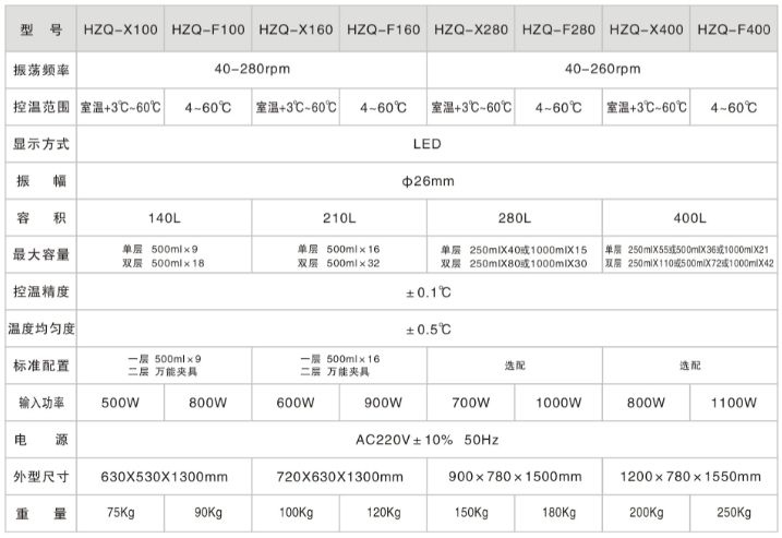 HZQ系列恒温,全温度振荡培养箱。是立式双层结构,具有占地小,效率高的特点。可满足实验室空间狭小而又较大规模恒温振荡培养的实验要求,其中100型、160型、280型为单开门,400型为双开门。一台机器双倍容量。