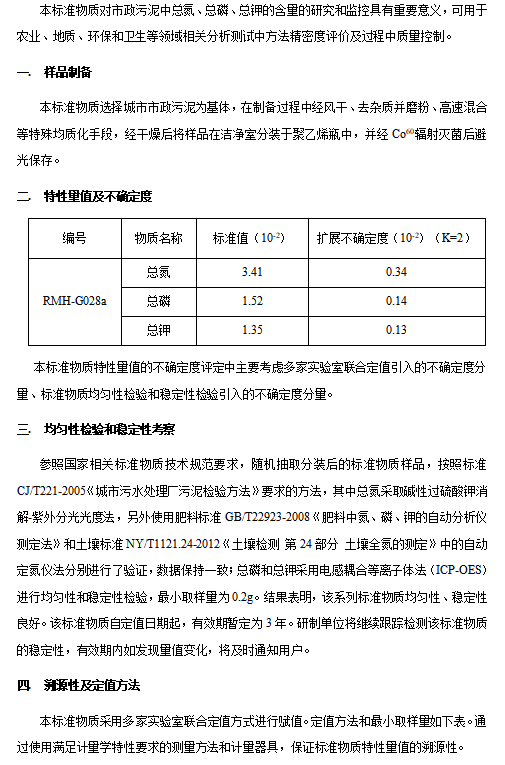 城市市政污泥中总氮,总磷,总钾分析标准物质