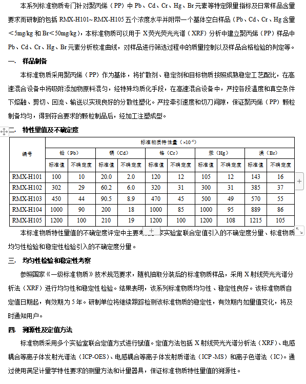 RoHS检测X荧光分析用标准物质聚丙烯中铅,镉﹑铬﹑?溳/div>