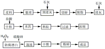 2ã€ä¸»è¦æ–¹æ³•有石ç°ä¹³æ³•å’Œç›é…¸æ³•两ç§åˆ¶æ³•。石ç°ä¹³æ³• 将牛皮ã€çŒªçš®ç‰å˜è´¨çš„下脚皮的内层油脂刮去,切å—,放åœ?.0%ï½?.0%的石ç°ä¹³ä¸æµ¸æ³?0ï½?0d,并ç»å¸¸æ…拌,ä¸é—´æ¢çŸ³ç°ä¹?ï½?次。浸泡åŽçš„生皮å–å‡ºã€æ´—å‡€ï¼Œåœ¨æ…æ‹Œä¸‹ç”¨10%çš„ç›é…¸ä¸å’?ï½?h,使pH值在6.0ï½?.5ã€‚ç„¶åŽæŒ‰1;1åŠ æ°´ï¼ŒåŠ çƒè‡³60ï½?0℃蒸煮,æ¯éš”一定时间抽å–胶水。将稀胶水é€å…¥è’¸å‘器浓缩,使相对密度为1.03ï½?.07。冷å´ã€å¹²ç‡¥ï¼Œæ¸©åº¦æŽ§åˆ¶åœ?8℃左å³ã€‚粉碎得æˆå“ã€ü/span>
