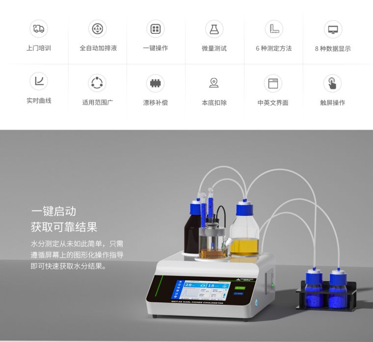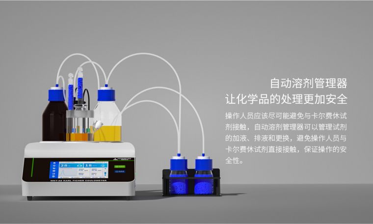 1.一键自动添加卡尔费休试剂,一键自动排出电解池废液,操作人员无需与试剂接?/p>