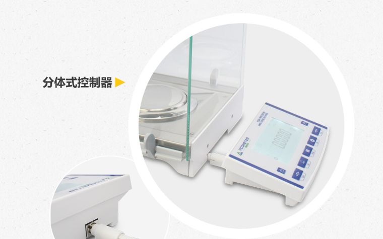 5.独特的分体式设计,将显示单元与称量单元分离,避免操作按键时对天平造成震动影响,并且可用于多角度监测称量过程、/p>