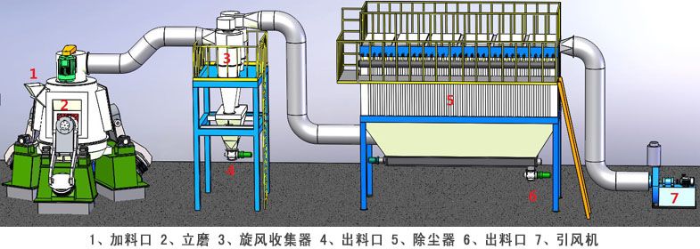 生产线主要由原料粗破、磨粉提取、收集输送、系统控制,四单元组成成套粉体生产线